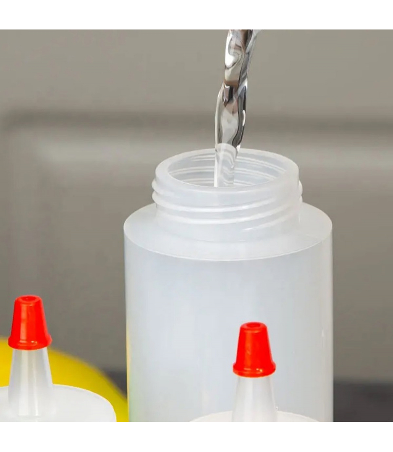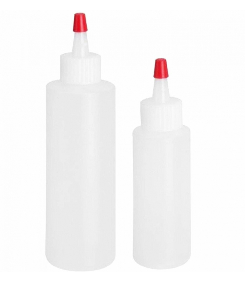 Zestaw dwóch butelek do dekoracji ciast i tortów. Pojemniki o różnych rozmiarach doskonale sprawdzą się przy ozdabianiu wyrobów cukierniczych. Elastyczna konstrukcja i wąskie ujścia zdecydowanie ułatwiają pracę. Funkcjonalne zakrętki zapobiegają przedwczesnemu zaschnięciu masy cukierniczej. Wykonane z solidnego tworzywa sztucznego, które zapewni długie i bezproblemowe użytkowanie.