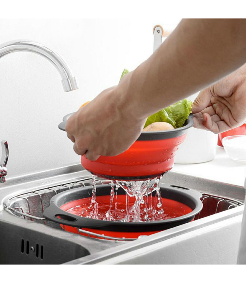 Zestaw dwóch niezwykle praktycznych silikonowych durszlaków o okrągłym kształcie. To doskonałe rozwiązanie które oszczędza cenną przestrzeń. Po złożeniu wysokość pojedynczego durszlaka to jedyne 3 cm, co znacznie ułatwia transport bądź przetrzymywanie w szafce. Z powodzeniem sprawdzą się w zastosowaniach turystycznych czy w niewielkich kuchniach. Po rozłożeniu osiągają wysokość 8 cm, co pozwala wygodnie opłukiwać i odcedzać owoce, warzywa czy makaron.