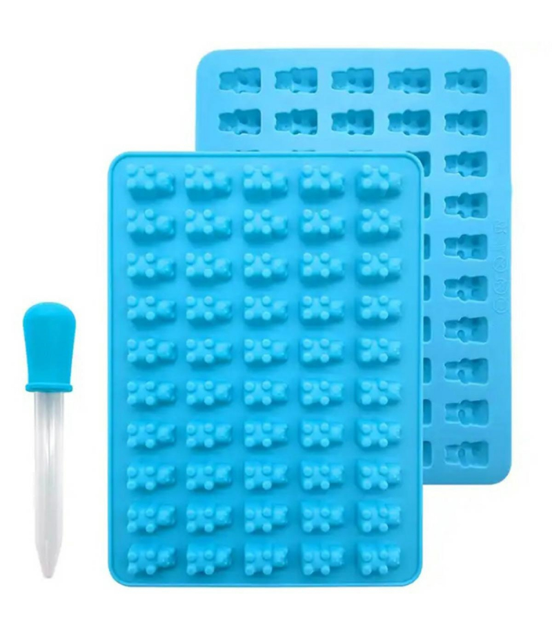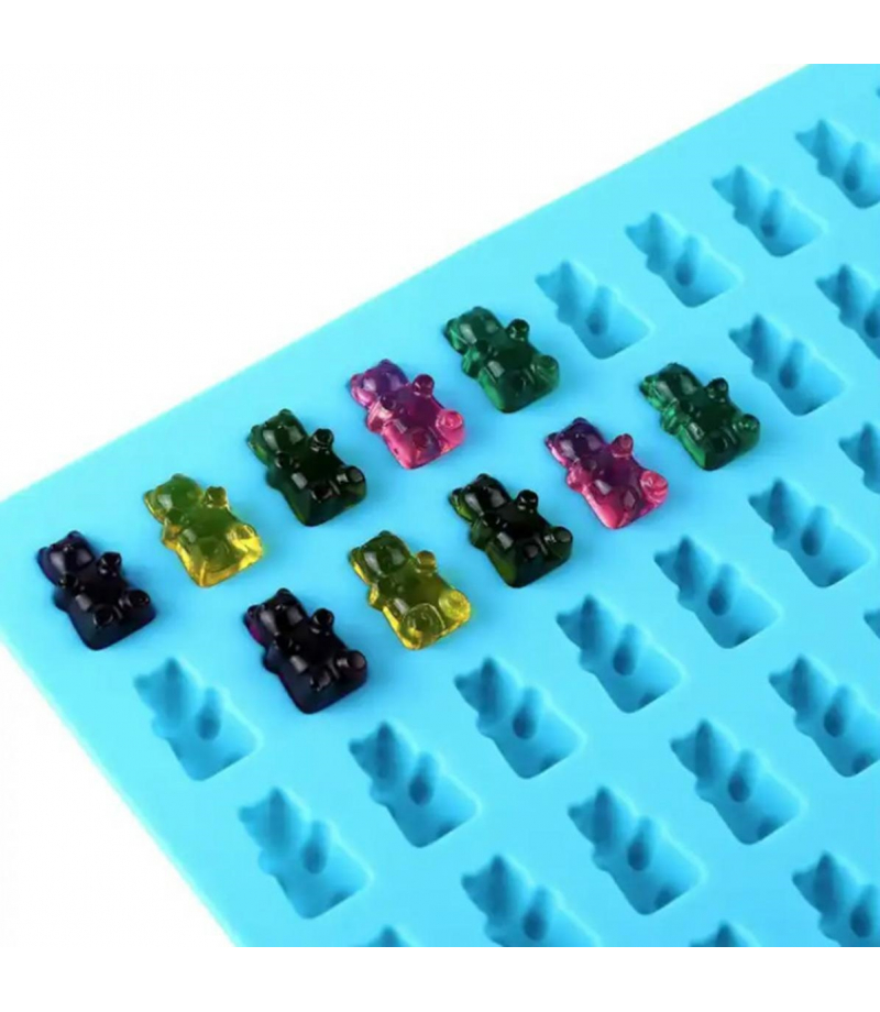 Silikonowa forma do wyrobu żelek. Wyposażona jest w aż 50 otworów w kształcie misiów. Doskonale nadaje się do formowania żelek dzięki dużej elastyczności i dołączonej specjalnej pipecie do żelatyny. Jest niezwykle łatwa do utrzymania w czystości i nie pochłania zapachów.