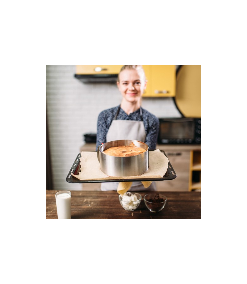 nadaje się do różnych rodzajów piekarników - regulowany rozmiar od 16 do 30 cm sprawia, że forma pasuje do wszystkich piekarników , a jej konstrukcja wytrzymuje wysokie temperatury