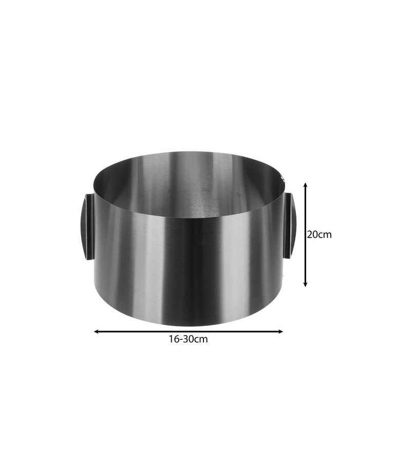 Regulowany rant do tortu 16-30 cm, cukiernicza forma tortownica h=20 cm! rant jest stabilny - rant został wykonany z trwałej stali nierdzewnej, a jego regulacja jest zabezpieczona mocnymi zaciskami, które zapewniają stabilność nawet przy maksymalnym rozciągnięciu łatwa regulacja - obręcz jest łatwa w regulacji wystarczy przesunąć rant do...