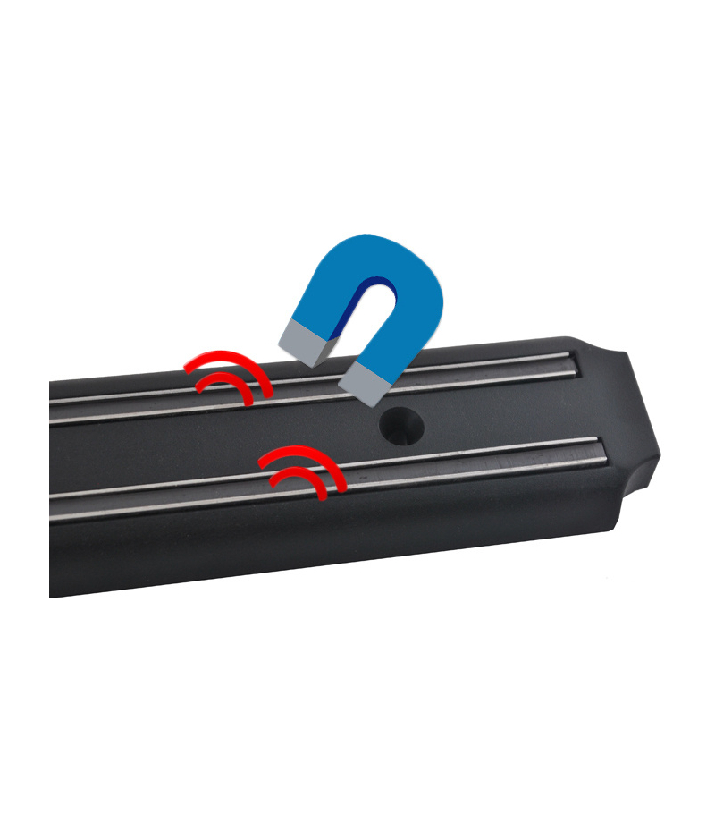 MOCNY MAGNES – listwa posiada bardzo mocny magnes, dzięki zastosowaniu podwójnego rdzenia magnesowego, przedmioty metalowe są mocno „przyczepione” do listwy. Nie ma możliwości osunięcia się przyczepionych akcesoriów.