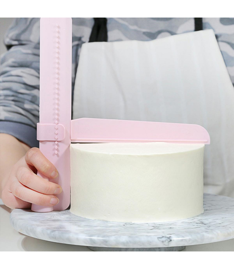 Regulowany skrobak do dekoracji ciast i tortów. Doskonale sprawdzi się przy ozdabianiu wyrobów cukierniczych. Posiada specjalną, regulowaną łopatkę dostosowującą skrobak do wysokości wypieku. Wykonany z solidnego tworzywa sztucznego, które zapewni długie i bezproblemowe użytkowanie.