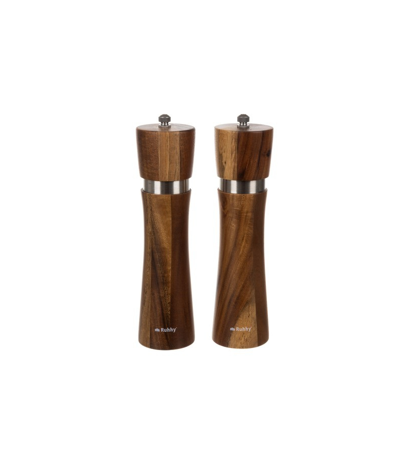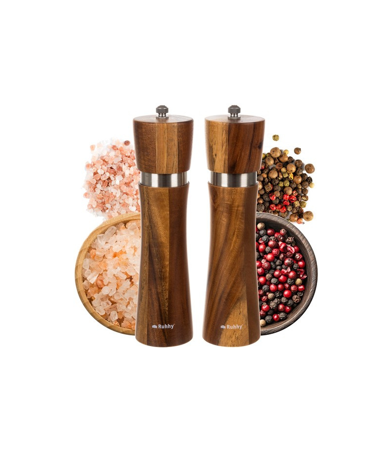 Zestaw 2 drewnianych młynków do soli i pieprzu z ceramicznym mechanizmem i regulacją grubości mielenia! regulacja grubości mielenia - od drobnego po gruboziarniste mielenie, dostosuj stopień rozdrobnienia do własnych preferencji, mielisz tak jak lubisz ceramiczny mechanizm mielący - zapewnia trwałość oraz precyzyjne mielenie przypraw, zmielisz nawet najtwardszą sól himalajską, a ziarna pieprzu nie stanowią najmniejszego problemu duża pojemność - 60 ml pojemnik na przyprawy,...