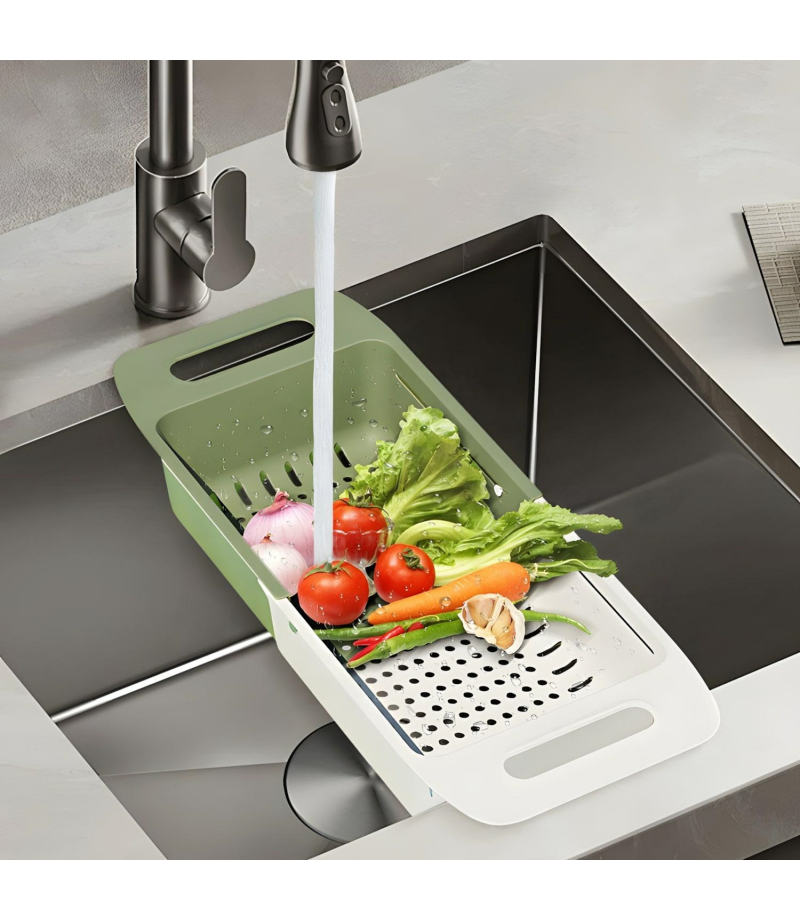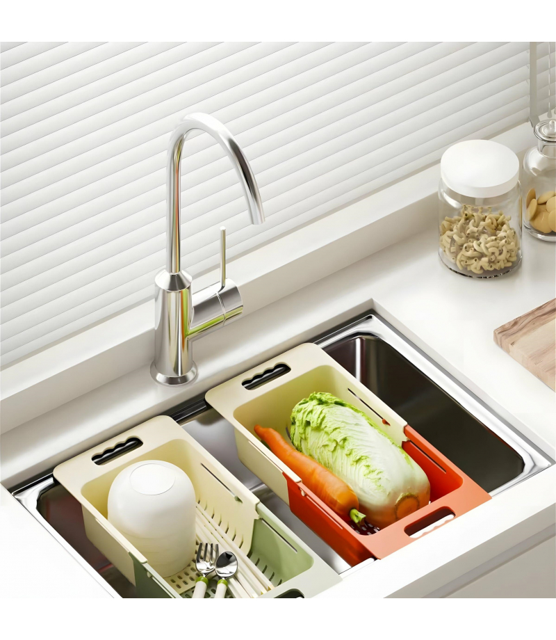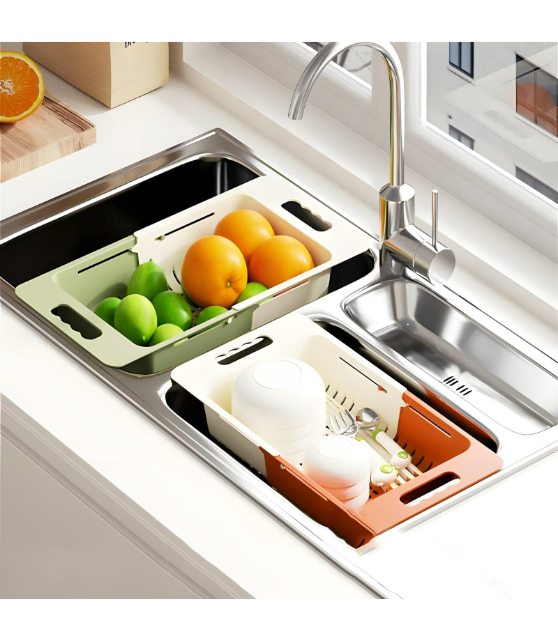Niezwykle praktyczny, regulowany ociekacz do naczyń. To doskonałe rozwiązanie które oszczędza cenną przestrzeń i umożliwia dopasowanie do każdej komory zlewozmywaka. Z powodzeniem sprawdzi się w zastosowaniach turystycznych czy w niewielkich kuchniach. Po rozłożeniu osiąga długość aż 45 cm, co pozwala zmieścić tam zestaw sztućców, szklanek i talerzy. Dzięki dziurkowanemu spodowi może również pełnić funkcję durszlaka.