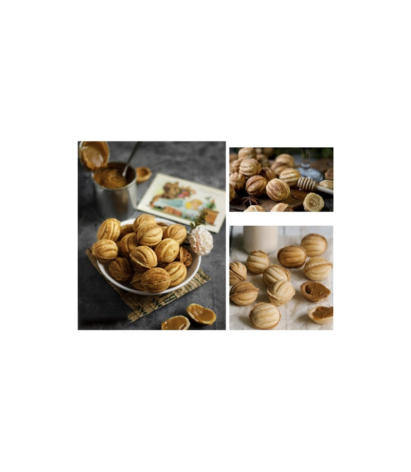 Urządzenie do wypiekania ciasteczek w formie orzeszków napełnianych kremem wedle upodobania słodkim lub wytrawnym jest w rozmiarze XL. Pozwala na upieczenie w jednym cyklu aż 24 połówki orzeszków. Obudowa posiada termoizolowane uchwyty i nieprzywierającą powłokę płyty grzejnej, a używanie produktu jest komfortowe. Wysoka moc 1600W sprawia, że upieczenie jednej partii ciasteczek zajmie maksymalnie 2 minuty.