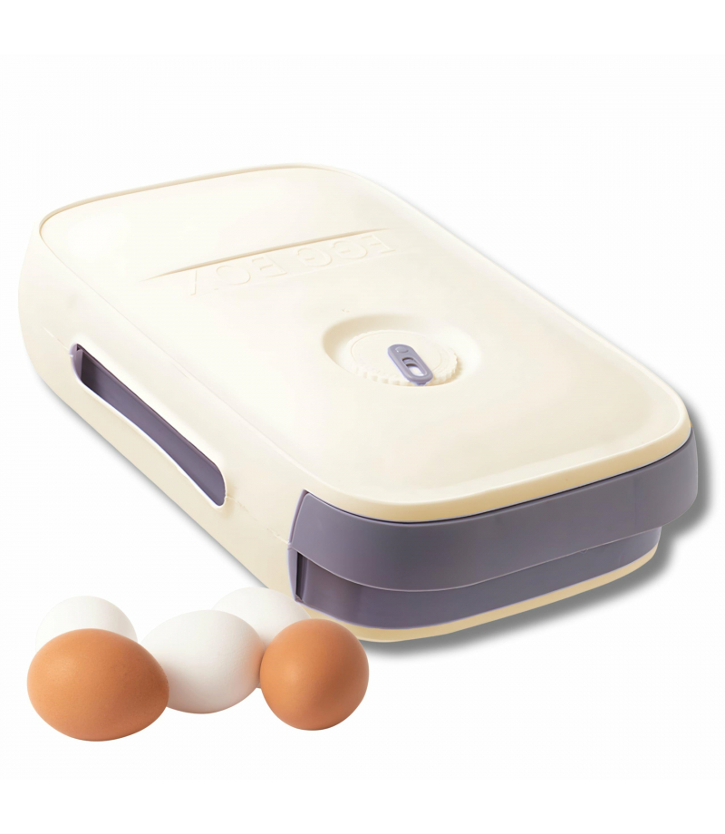 Wygodny pojemnik służący do przechowywania jajek. Kompaktowa konstrukcja typu szuflada umożliwia wygodne wyciąganie i wkładanie jaj w aż 3 rzędach. Każdy z rzędów został wyprofilowany w sposób uniemożliwiający przypadkowe stłuczenie jajek. Wygodne pokrętło w górnej części pojemnika zapewnia szybkie otwieranie i zamykanie szufladki.