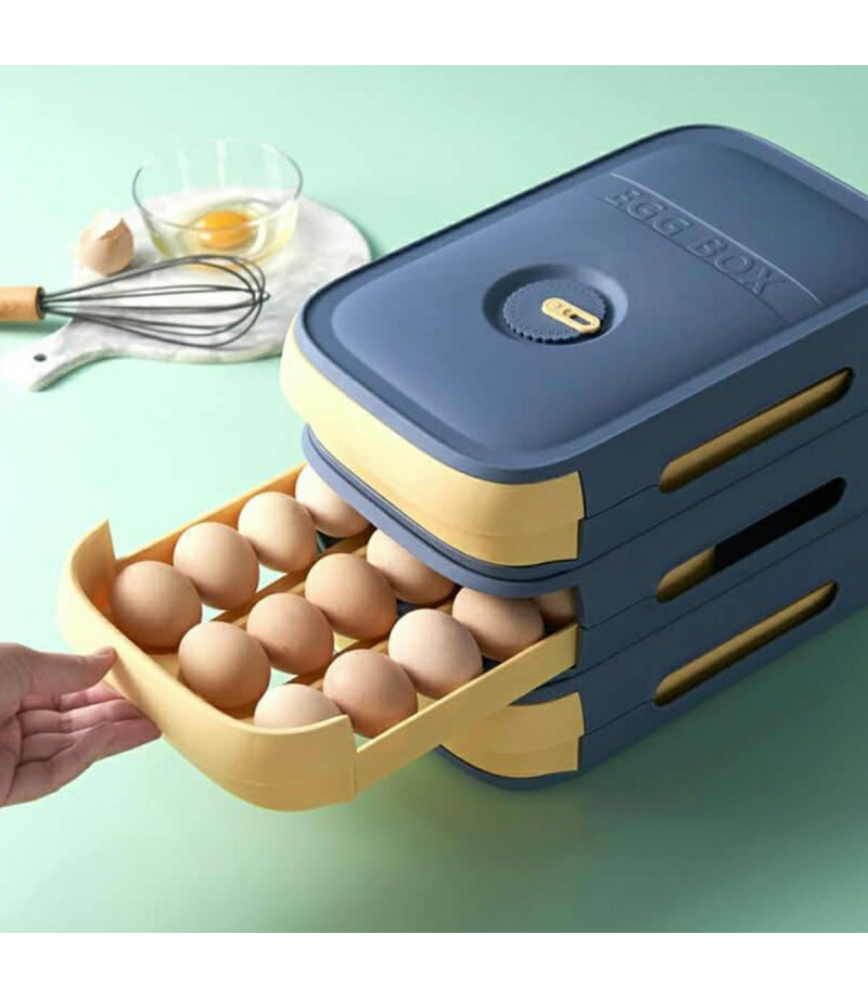 Wygodny pojemnik służący do przechowywania jajek. Kompaktowa konstrukcja typu szuflada umożliwia wygodne wyciąganie i wkładanie jaj w aż 3 rzędach. Każdy z rzędów został wyprofilowany w sposób uniemożliwiający przypadkowe stłuczenie jajek. Wygodne pokrętło w górnej części pojemnika zapewnia szybkie otwieranie i zamykanie szufladki.