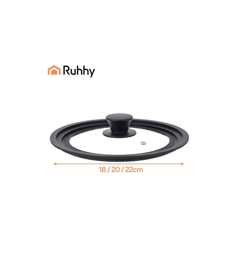 Uniwersalna pokrywka 3w1 Ruhhy to praktyczne rozwiązanie, które zastępuje kilka zwykłych pokrywek. Dzięki trzem średnicom dopasowuje się do różnych garnków i patelni, pozwalając zaoszczędzić miejsce w kuchni i gotować wygodniej. Solidne wykonanie z żaroodpornego szkła i silikonu zapewnia trwałość, bezpieczeństwo i wygodę użytkowania.