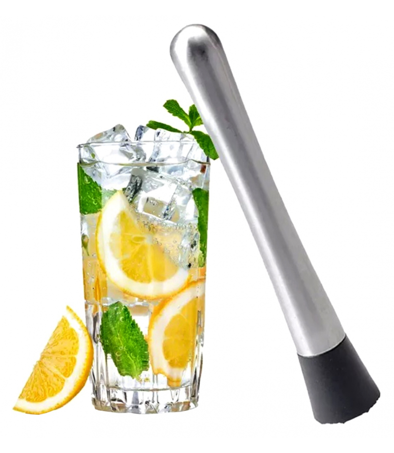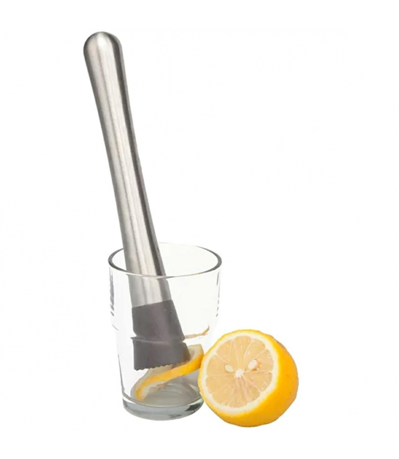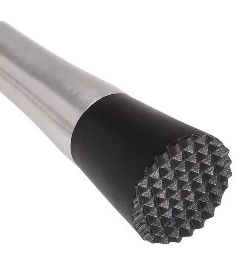 Tłuczek barmański - muddler. To niezbędne akcesorium służące do ubijania drinków. Wykonany z solidnej stali. Wyprofilowana rączka ułatwia jego trzymanie. Końcówka tłuczka wykonana z twardego, perforowanego tworzywa.