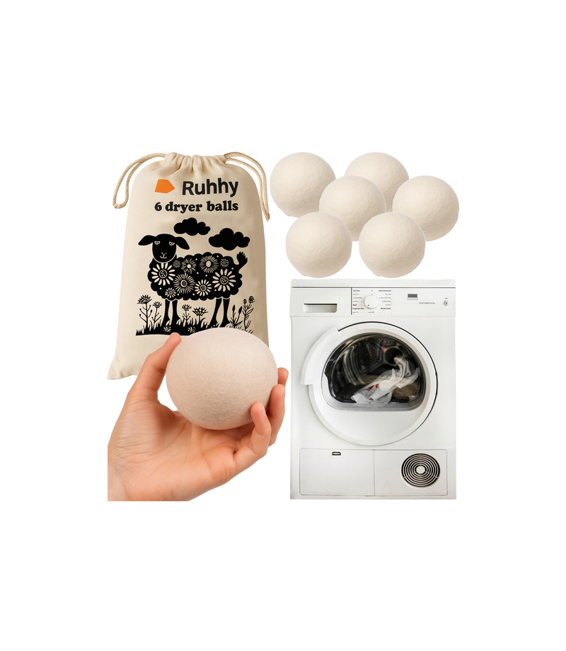 Wełniane kule do suszarki, miękkie pranie, kulki do suszenia zmiękczające x 6 RUHHY! szybsze suszenie - kulki Ruhhy rozdzielają tkaniny w bębnie, przyspieszając cyrkulację powietrza, skracają czas suszenia nawet o 30% , co oznacza oszczędność prądu i pieniędzy , idealne do suszarek bębnowych miękkie i bez elektryzowania się - wełna naturalnie zmiękcza ubrania i eliminuje elektryzowanie , bez chemii i bez podrażnień bezpieczne - nie rysują bębna, nie niszczą tkanin, nadają...