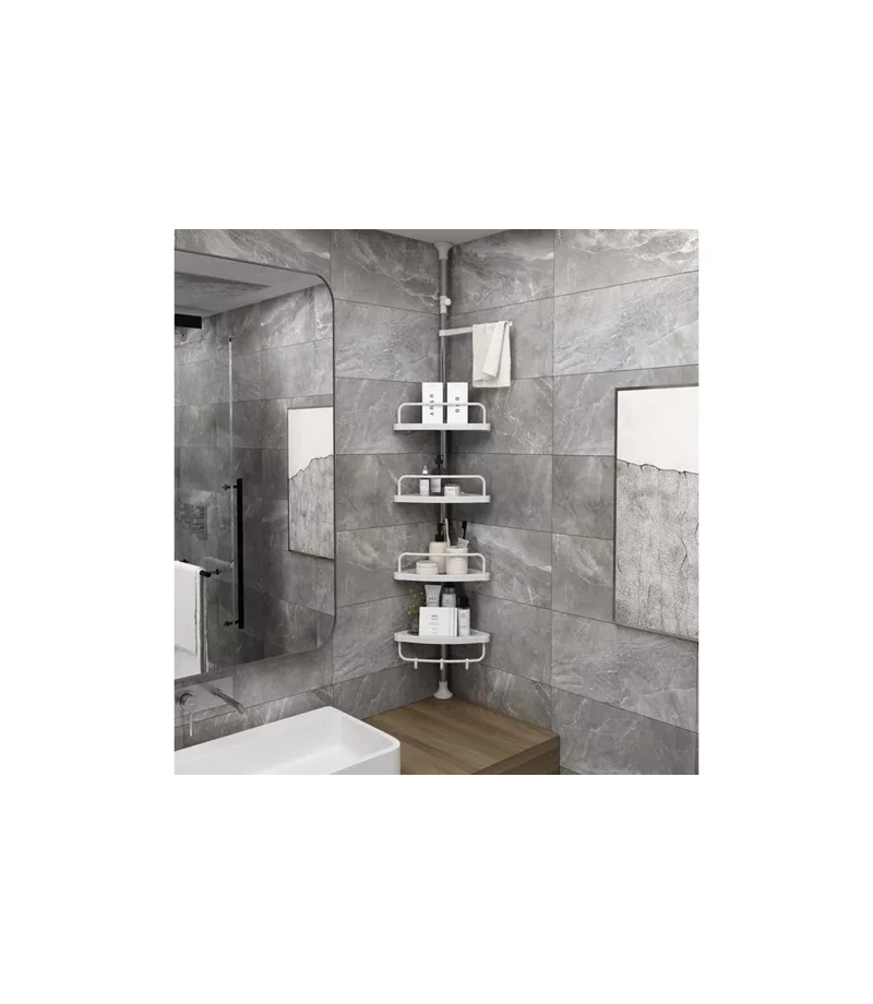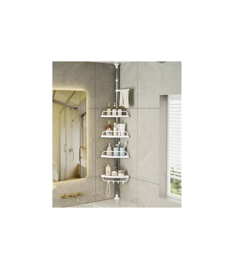 PÓŁKA NAROŻNA PRYSZNICOWA REGULOWANA 230-300cm 4 POZIOMY I WIESZAK – organizer łazienkowy posiada 4 półki oraz wieszak, które można niezależnie ustawiać na różnej wysokości oraz dowolnie okręcać je wokół osi drążka mocującego. REGULACJA WYSOKOŚCI – drążek montażowy reguluje się w zakresie wysokości 230-300cm, dzięki czemu można go dopasować w różnego rodzaju miejscach w niemal każdej łazience. ŁATWA W CZYSZCZENIU – każda z półek wykonana jest z gładkiego tworzywa...