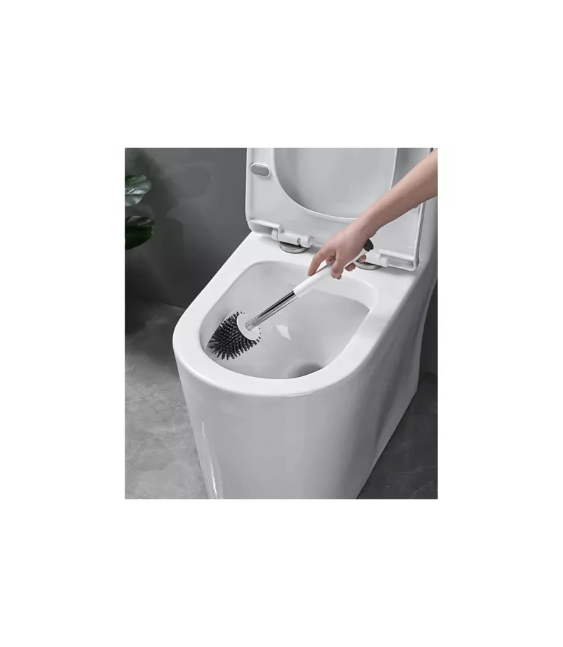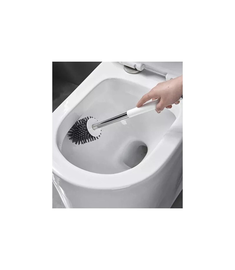 Designerska szczotka toaletowa z pojemnikiem w nowoczesnej biało-szarej kolorystyce dokładnie wyczyści Twoją toaletę. Silikonowa główka szczoteczki niezawodnie czyści toaletę, w tym wszystkie zagięcia i zakamarki. Dzięki dłuższej rączce będziesz mógł dotrzeć do jeszcze głębszych i mniej dostępnych miejsc w toalecie.