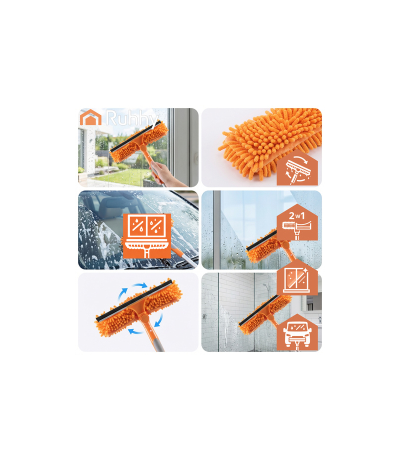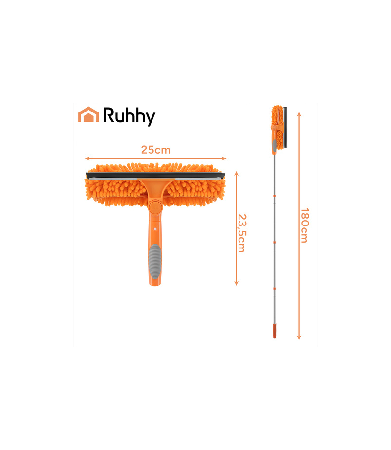 Myjka teleskopowa do okien 1,8 m bez drabiny / myjka ręczna / mycie w pionie i poziomie180°Ruhhy 3w1 + nakładki Masz dość smug na szybach i sięgania na palcach do górnych partii oknaTa myjka teleskopowa Ruhhy 3w1 ułatwia mycie szyb, luster i innych gładkich powierzchni bez drabiny . Regulowany drążek 1,8 m oraz głowica obrotowa 180° pomagają dotrzeć tam, gdzie zwykła ściągaczka nie daje rady. Kluczowe cechy teleskopowej myjki 3w1 RUHHY myjka 3w1 - z teleskopem 1,8 m, myjką...