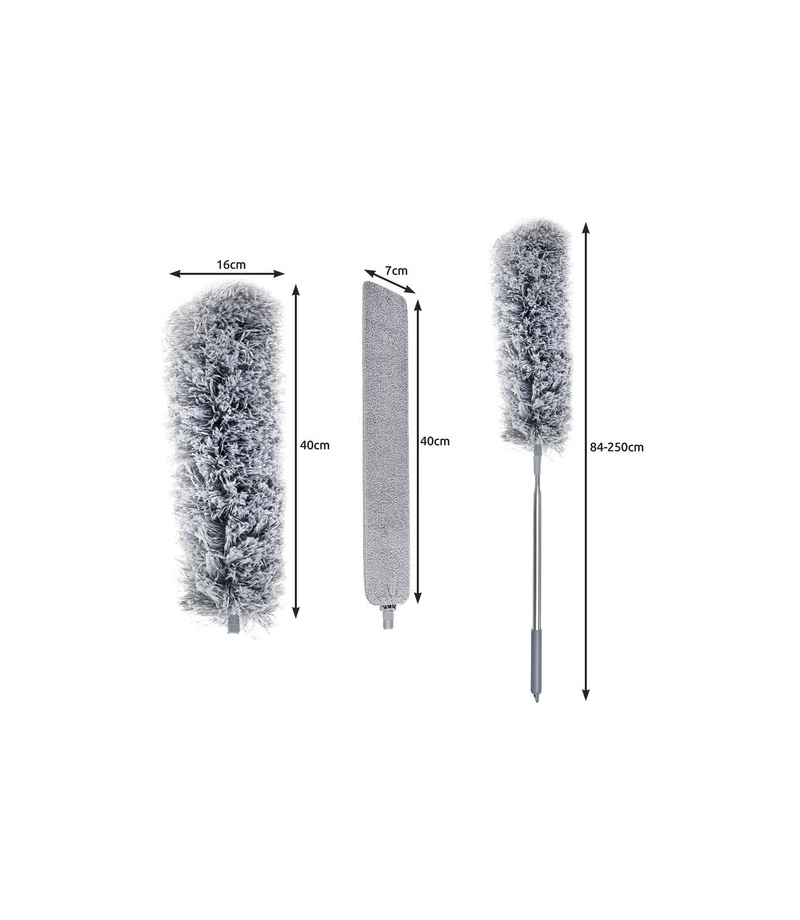 SZCZOTKA TELESKOPOWA Z 2 RÓŻNYMI KOŃCÓWKAMI TELESKOPOWA - z tą miotełką do kurzu dotrzesz praktycznie w każde miejsce wymagające czyszczenia i to bez większego wysiłku ! W wersji złożonej kurzawka ma 84 cm, zaś po rozłożeniu na pełną długość osiąga aż 250 cm! Co ciekawsze nie musisz rozkładać miotełki na maksymalny zasięg, ale do długości która aktualnie jest Ci potrzebna. DWIE RÓŻNE KOŃCÓWKI – wejdź na wyższy poziom sprzątania! Miotełka posiada dwie wymienne końcówki....