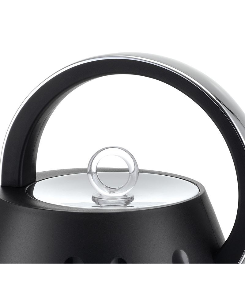 Niebanalna stylistyka i elegancja idą tu w parze z funkcjonalnością i bezpieczeństwem użytkowania.Urządzenie zostało wykonane z zastosowaniem wysokiej jakości podzespołów marki STRIX Technology. Posiada obrotową podstawę, potrójne zabezpieczenie przed przegrzaniem oraz filtr siatkowy, który nie dopuszcza do przedostawania się kamienia oraz innych mechanicznych osadów. Duża pojemność (1,7 litra) oraz wysoka moc sprawiają, że w czajniku można szybko zagotować sporą porcję wody. Poziom napełnienia wodą widoczny jest dzięki praktycznemu wskaźnikowi, a lampka kontrolna sygnalizuje pracę urządzenia.