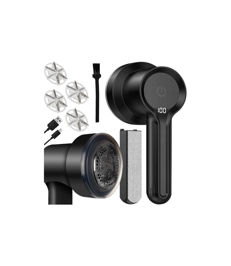 kompletny zestaw - zawiera golarkę do ubrań z elektrostatyczną szczotką, 4 głowice tnące, pędzelek do czyszczenia, pojemnik na ścinki, przewód USB-C do szybkiego ładowania oraz eleganckie opakowanie – idealne na prezent!