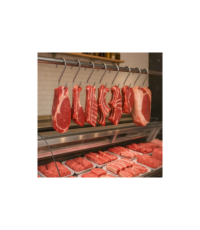 - stal nierdzewna najwyższej jakości – odporność i bezpieczeństwo - haki do wędzenia wykonane są z grubej stali nierdzewnej , odpornej na rdzę, wysokie temperatury i wilgoć, dzięki czemu idealnie nadają się do wędzenia w każdych warunkach