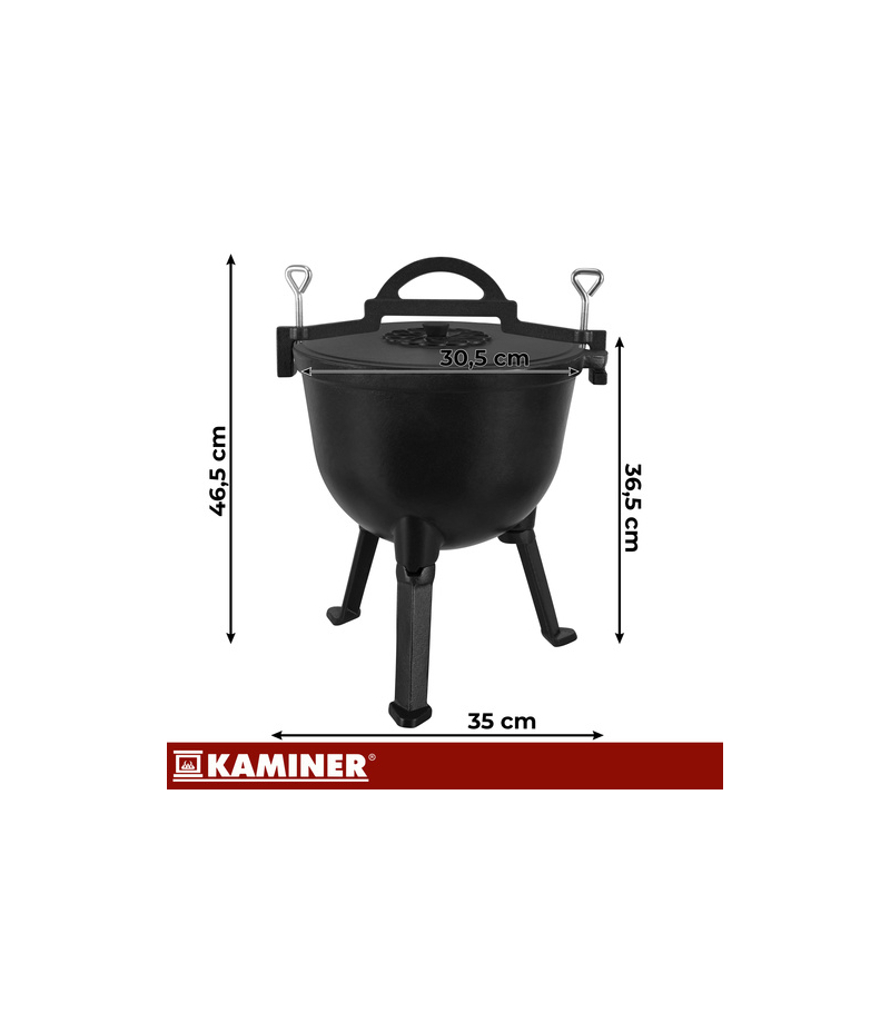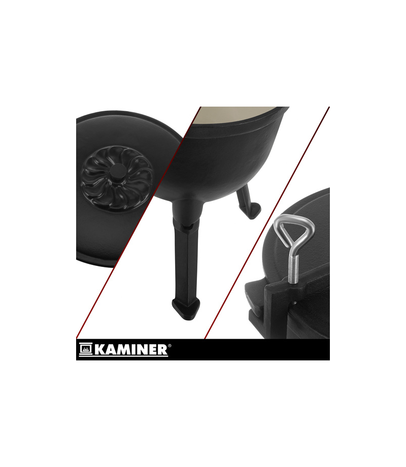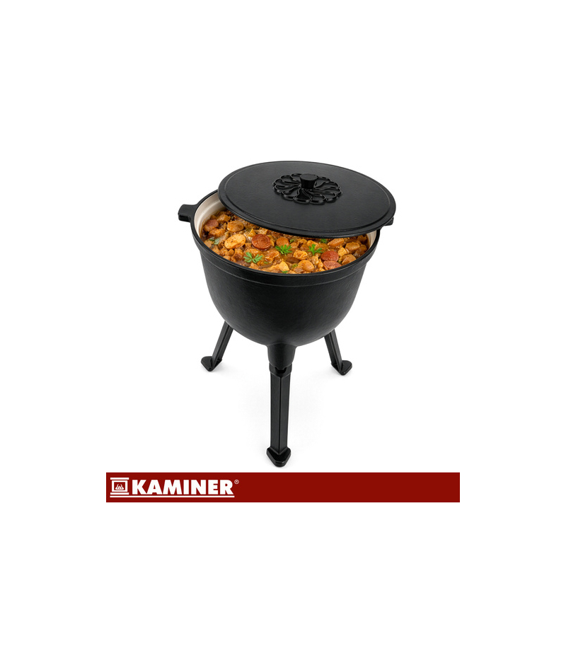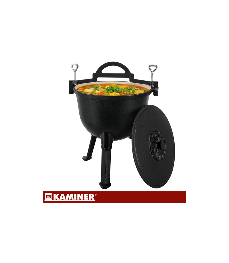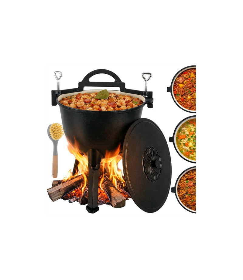 Masz dość nierównego gotowania w garnkach, które przypalają potrawy przy ognisku Kociołek żeliwny Kaminer 10L z emaliowanym wnętrzem pozwala przygotować sycące dania na ognisku, w palenisku lub nad żarem - wygodnie i bez ciągłej walki z czyszczeniem . To sprawdzony wybór na biwak, działkę i rodzinne wypady.