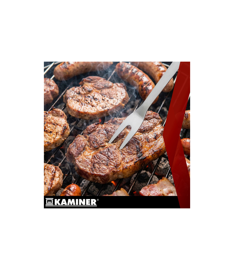 Zestaw przyborów do grilla Kaminer 5 el ze stali nierdzewnej + solidne etui z uchwytami Masz dość szukania szczypiec, łopatki czy pędzelka tuż przed grillemTen zestaw Kaminer porządkuje wszystko w jednym mocnym etui - komplet narzędzi w jednym miejscu . Bierzesz etui i jesteś gotowy na ogród, działkę lub wyjazd. Najważniejsze zalety akcesoriów grillowych KAMINER - 5 elementów w etui - wszystko masz pod ręką i nie gubisz akcesoriów - stal nierdzewna w narzędziach - dłuższa trwałość i łatwiejsze czyszczenie po grillu - bezpieczniejsza odległość od żaru (szczypce, łopatka, widelec, nóż i pędzelek) - długie uchwyty sprawiają, że trzymasz dłonie dalej od źródła ciepła - każdy element ma wieszak na uchwycie - odkładasz narzędzia na grillu / haczyku i masz wolne ręce do doprawiania, podawania i ogarniania stołu - osobne miejsce na każdy element (elastyczne uchwyty) - porządek i szybki dostęp w trakcie grillowania - satynowane uchwyty - elegancki wygląd, pewny chwyt i większy komfort w trakcie grillowania - łatwe transportowanie - w solidnym etui z uchwytami, każdy element ma swoje miejsce, otwierasz etui i od razu widzisz gdzie co jest - certyfikat LFGB do kontaktu z żywnością - większy spokój przy... Więcej szczegółów