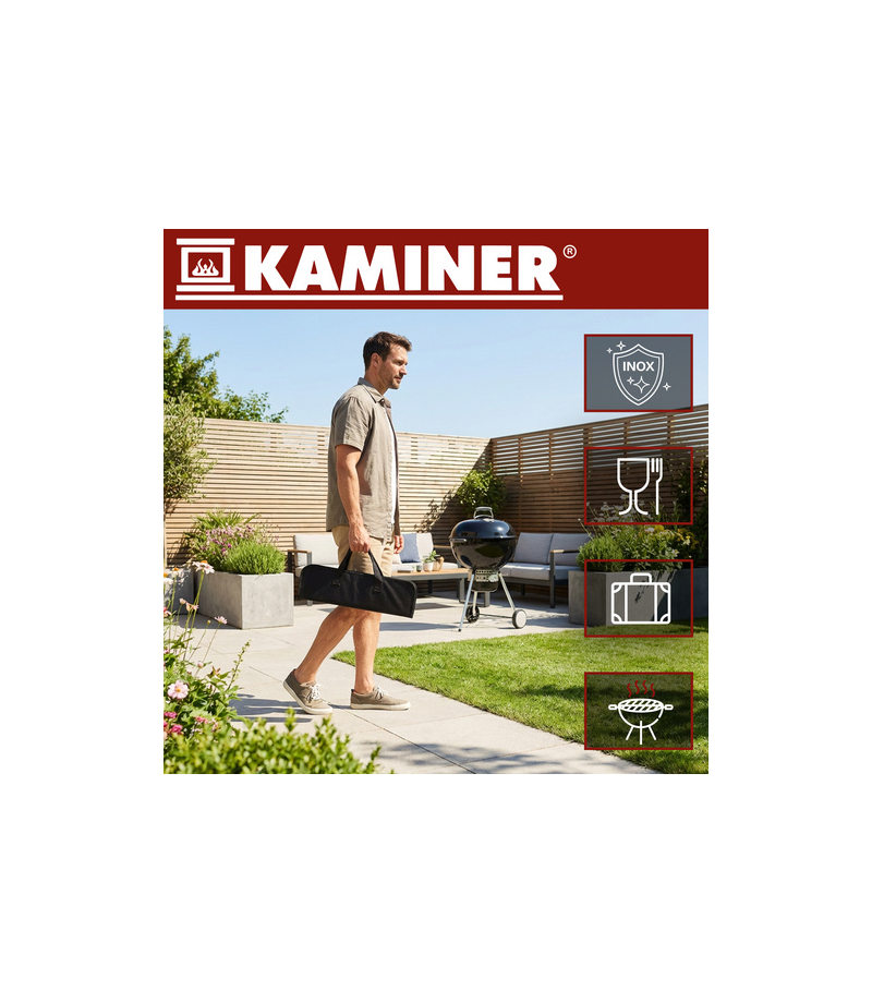 Masz dość szukania szczypiec, łopatki czy pędzelka tuż przed grillemTen zestaw Kaminer porządkuje wszystko w jednym mocnym etui - komplet narzędzi w jednym miejscu . Bierzesz etui i jesteś gotowy na ogród, działkę lub wyjazd.