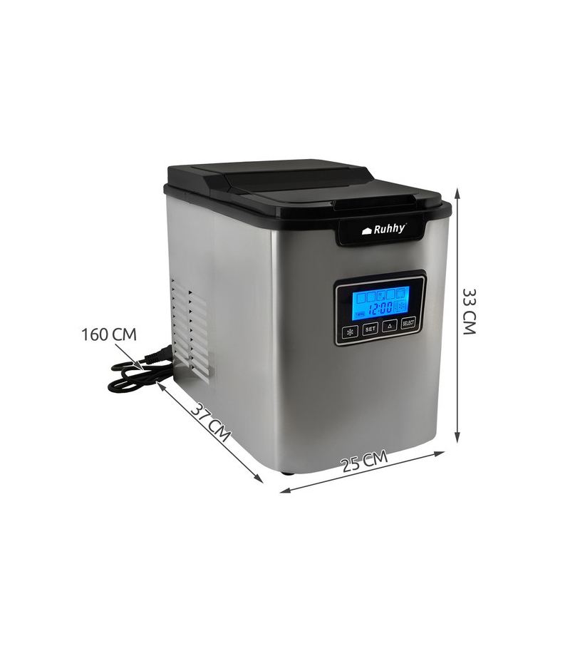 KOSTKARKA DO LODU 3 ROZMIARY KOSTEK - kostkarka posiada dodatkową funkcje, taką jak możliwość wyboru rozmiaru kostek lodu. Kostkarka produkuje aż 3 rozmiary kostek – S/M/L, aby zmienić rozmiar należy użyć przycisku SELECT. SAMOCZYSZCZENIE + KOREK SPUSTOWY - dodatkową zaletą tej kostkarki jest samooczyszczenie. Po skończonej produkcji kostek wystarczy ustawić tryb samooczyszczenia. Po zakończonej pracy należy otworzyć korek spustowy i wylać wodę po czyszczeniu. ZEGAR + FUNKCJA...