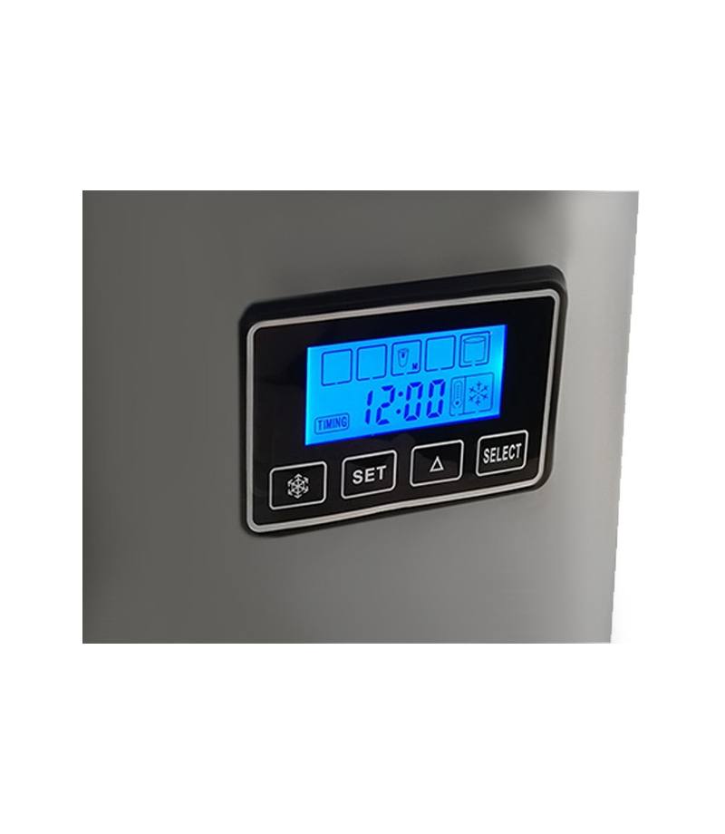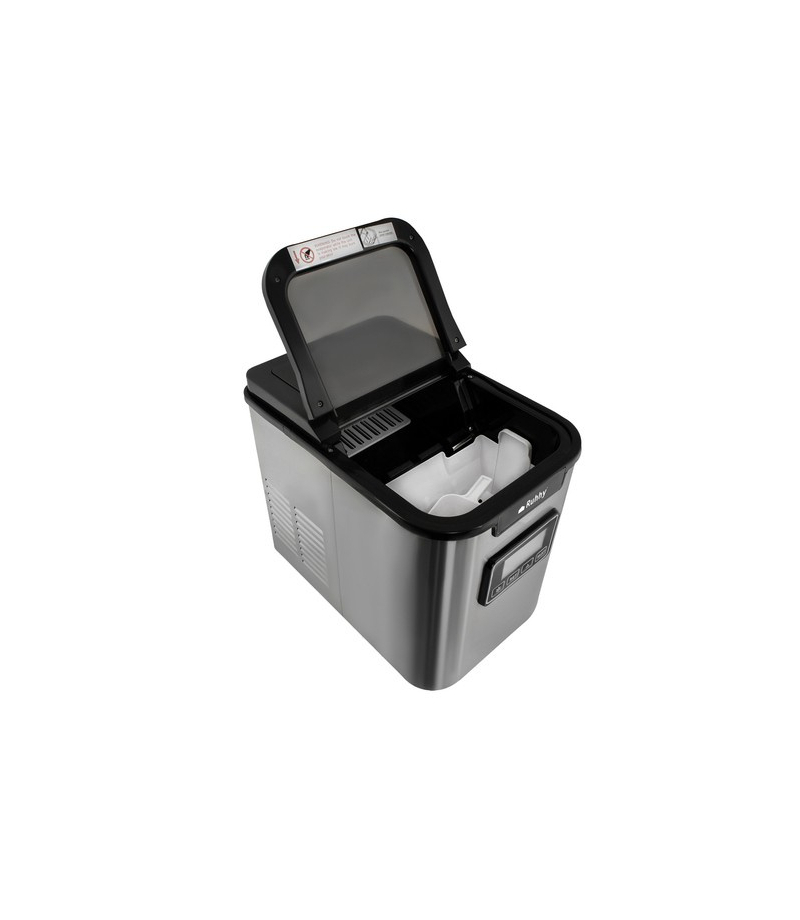 WYŚWIETLACZ LCD + INFORMACJA DŹWIĘKOWA - kostkarka posiada wyświetlacz lcd, dzięki któremu z łatwością można ustawić funkcję, które posiada. Wyświetlacz pokazuję godzinę, rozmiar kostek i funkcjach które w danym momencie są wykonywane. Dodatkowym atutem jest dźwiękowa informacja o przepełnianiu koszyka / niskiego poziomu wody.