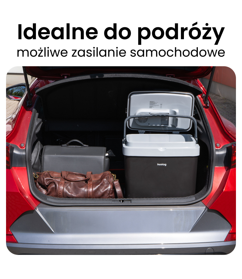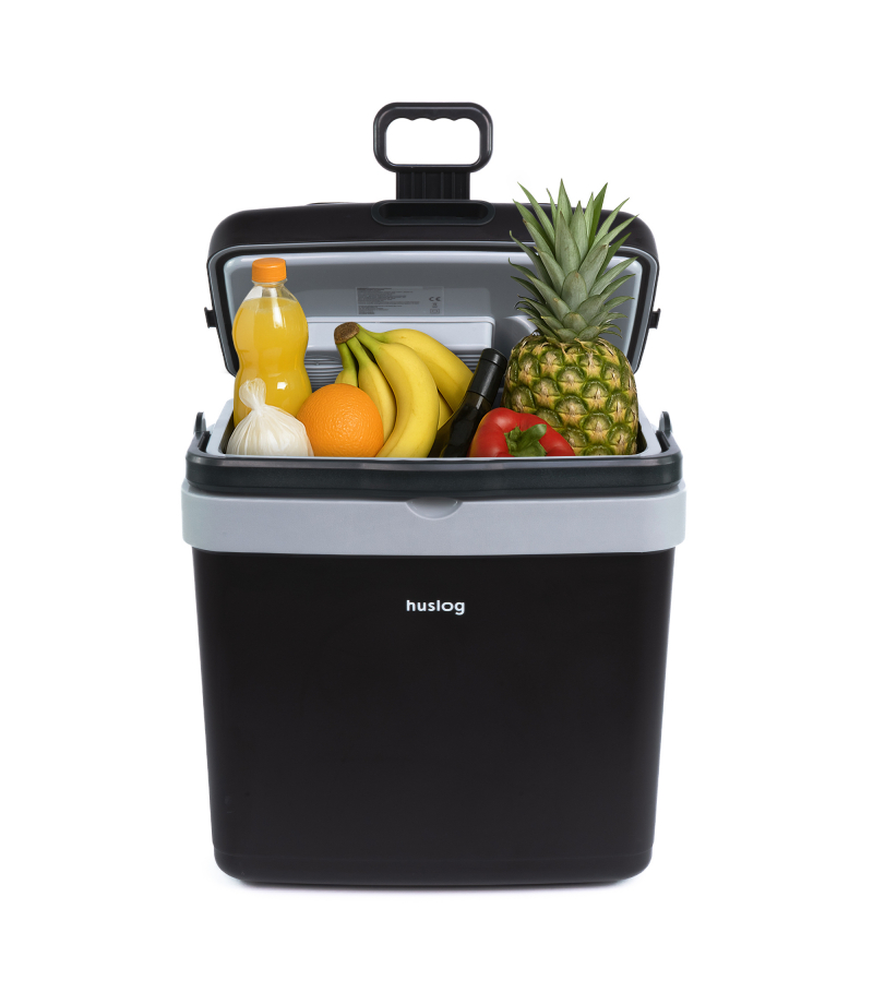 Idealna na każdy wyjazd lodówka turystyczna Huslog z trybem ECO, zabezpieczeniem pokrywy przed otwarciem i praktyczną przegródką .