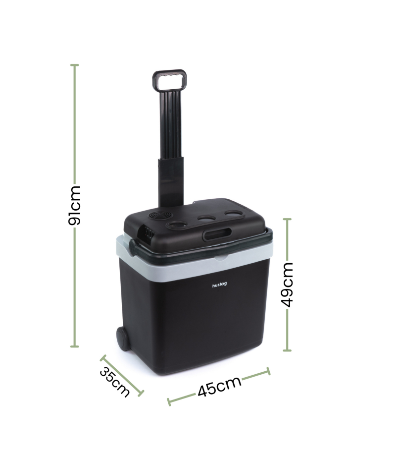 Funkcja grzania – Wyjazdy w chłodniejsze dni nie będą miały sobie równych, jeśli zabierzesz lodówkę turystyczną na kółkach Huslog, która potrafi także podtrzymywać temperaturę wcześniej podgrzanych lub jeszcze ciepłych produktów do 65°C.
