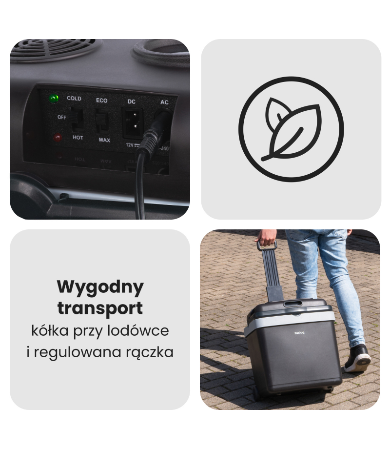 Posiada kółka i regulowaną rączkę – Za pomocą szerokiej rączki do przenoszenia możesz wygodnie wyjąć lodówkę z samochodu, a także przenieść ją lub wnieść po schodach. Ale nie musisz jej nosić cały czas! Została wyposażona w dodatkowy wysuwany na wysokość 91 cm uchwyt oraz kółka w podstawie.