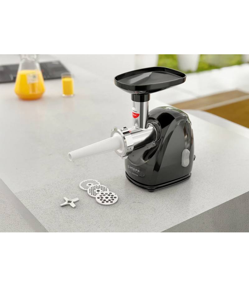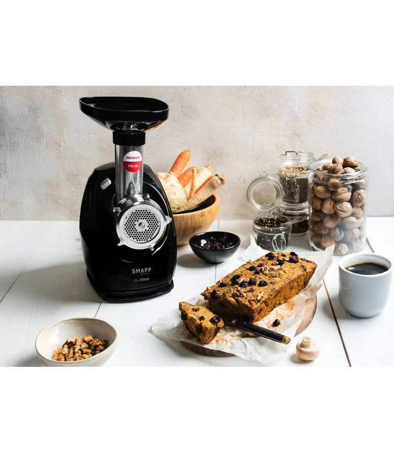 Maszynka do mięsa SMAPP 489.8 | 2000 W | 2,5 kg/min | 3 sita (2,7 / 4 / 8 mm) | czarna SMAPP MASZYNKA DO MIĘSA 489.8 czarna Produkt Polski Maszynka do mielenia 489.8 SMAPP to gwarancja jakości oraz długiej i niezawodnej pracy. Ergonomiczna, udoskonalona, zwarta obudowa ułatwia użytkowanie zwłaszcza w trakcie intensywnego użytkowania.Wyprofilowany uchwyt z tyłu obudowy, ułatwia operowanie maszynką bez konieczności przerywania pracy nawet osobom o drobnej...