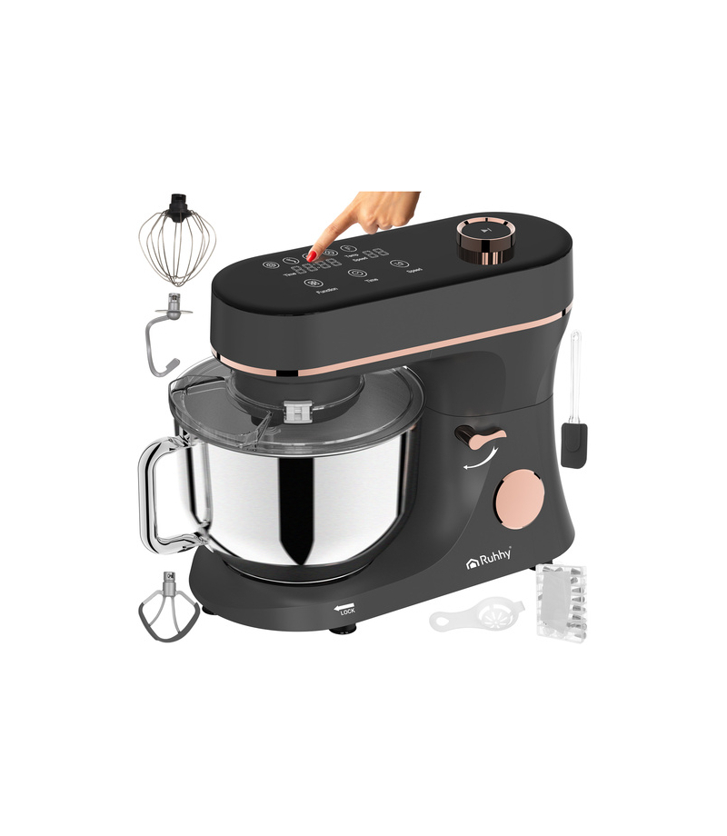 Ręczne wyrabianie ciasta to przeszłość – robot RUHHY zrobi to za Ciebie. Podgrzewana misa tworzy idealne warunki do wyrastania ciasta drożdżowego, a zestaw końcówek (hak, rózga, trzepaczka) pozwala przygotować każdy rodzaj masy – od lekkich kremów po gęste ciasta na pizzę czy chleb. Dotykowy wyświetlacz, pokrętło sterujące, misa z uchwytem i pokrywa ochronna to gwarancja wygody i porządku. Stylowy, funkcjonalny i gotowy do działania – RUHHY to Twój niezawodny partner w codziennej kuchni.