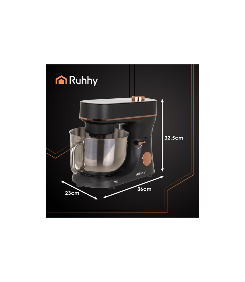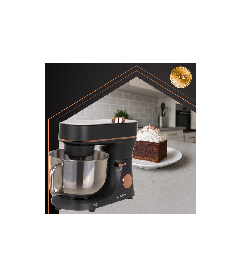 - wielofunkcyjny robot RUHHY łączy moc do 2000 W, 11 poziomów prędkości, tryb podgrzewania i intuicyjne sterowanie – umożliwia mieszanie, ubijanie, wyrabianie i fermentację z pełną kontrolą.