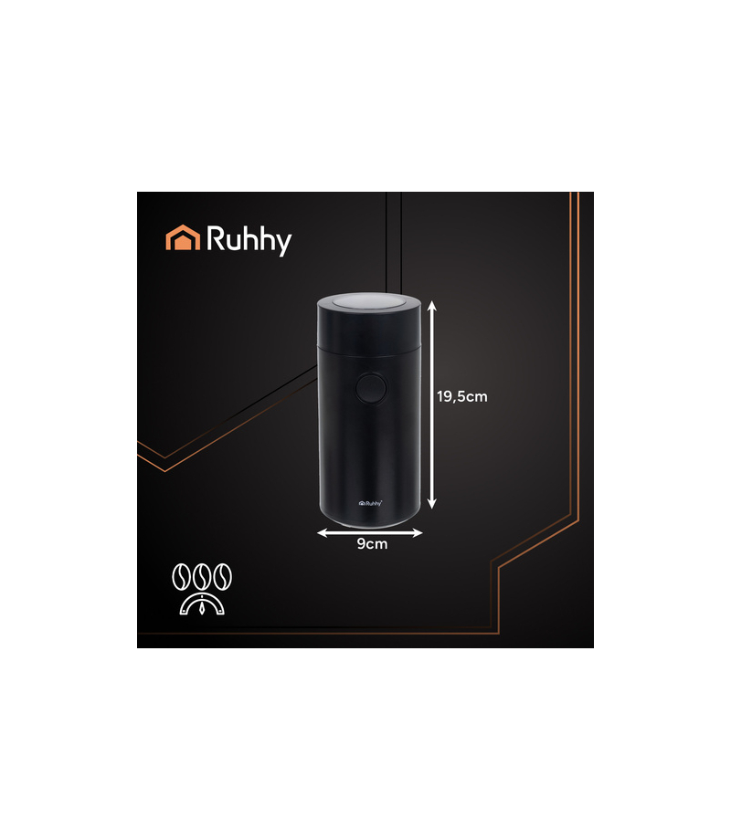 elektryczny młynek RUHHY to prostota i efektywność – wystarczy jeden przycisk, by w kilka sekund przygotować świeżo mieloną kawę , aromatyczne przyprawy czy orzechy do domowych wypieków