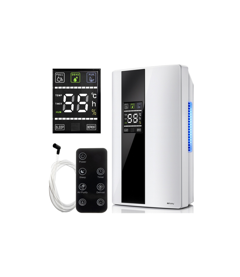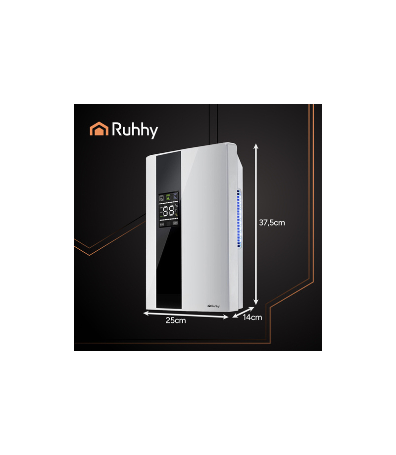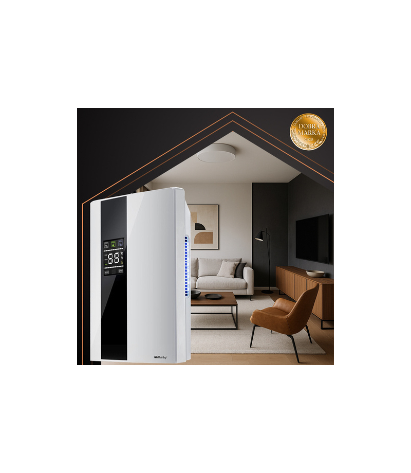 Zadbaj o czyste, suche i świeże powietrze w swoim domu dzięki urządzeniu 2w1. RUHHY to połączenie osuszacza i oczyszczacza powietrza – skutecznie usuwa nadmiar wilgoci, a jednocześnie pomaga odświeżyć atmosferę w pomieszczeniu, eliminując zaduch i poprawiając jakość oddychania. Cichy, energooszczędny, z dotykowym panelem, pilotem i funkcją inteligentnego ustawienia wilgotności – idealny do łazienki, kuchni czy sypialni. Działa automatycznie, dokładnie wtedy, gdy trzeba.