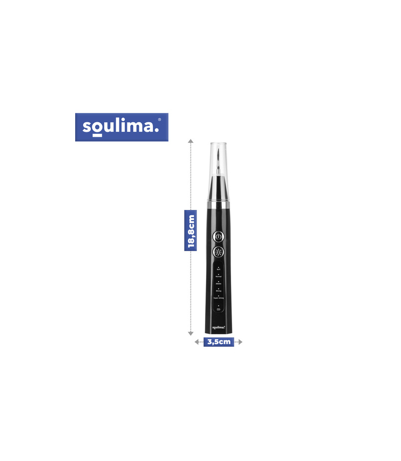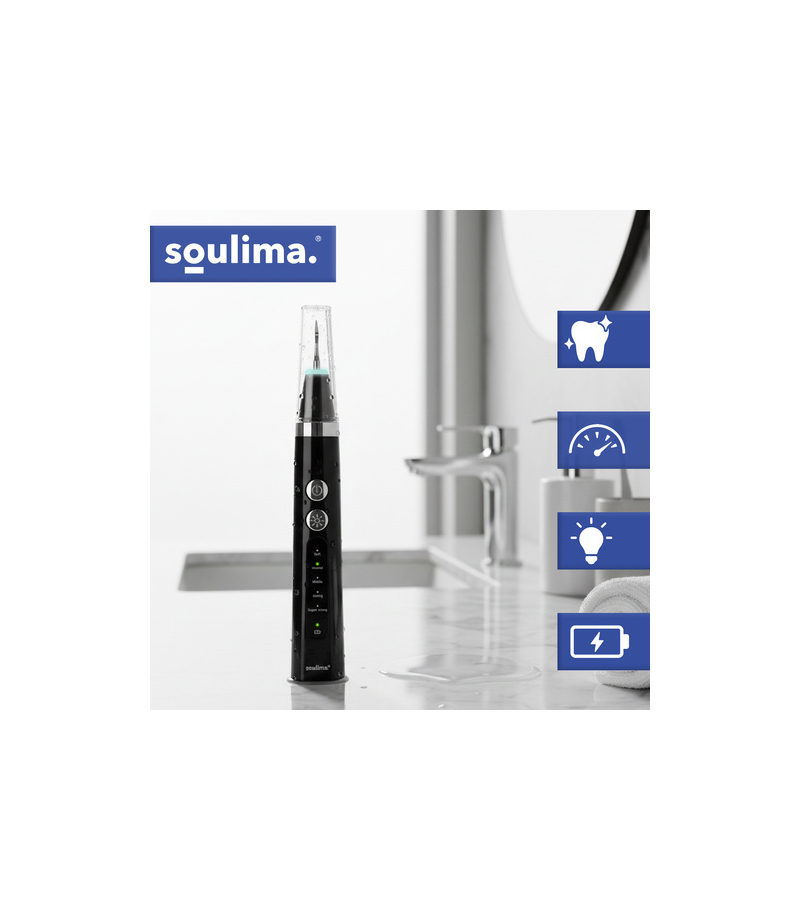 Ultradźwiękowy Skaler Soulima to nowoczesne urządzenie stworzone do samodzielnego, skutecznego i bezpiecznego usuwania kamienia, osadów i przebarwień . Dzięki regulacji aż w pięciu poziomach intensywności oraz precyzyjnym końcówkom zapewnia profesjonalne efekty higieniczne w warunkach domowych. Podświetlenie LED ułatwia pracę w trudno dostępnych miejscach, a wydajna bateria pozwala na kilka godzin użytkowania bez ładowania. Skaler Soulima rozwiewa wszystkie wątpliwości: pracuje w technologii ultradźwiękowe j, która precyzyjnie rozbija osad i kamień bez uszkadzania szkliwa , a jego dźwięk staje się słyszalny dopiero po zetknięciu z powierzchnią zęba - co oznacza, że działa prawidłowo i skutecznie.