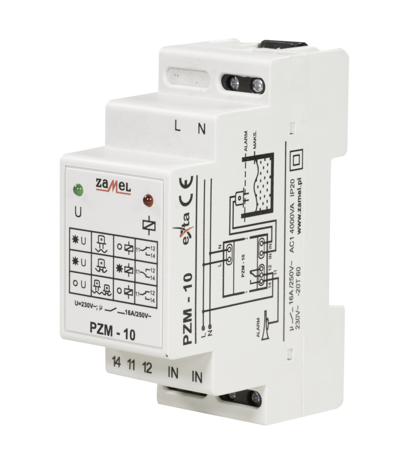 Przekaźnik zalania PZM10 służy do wykrywania obecności płynów przewodzących (np. woda) na wysokości zamontowanej sondy zalania (SZH03). Więcej szczegółów