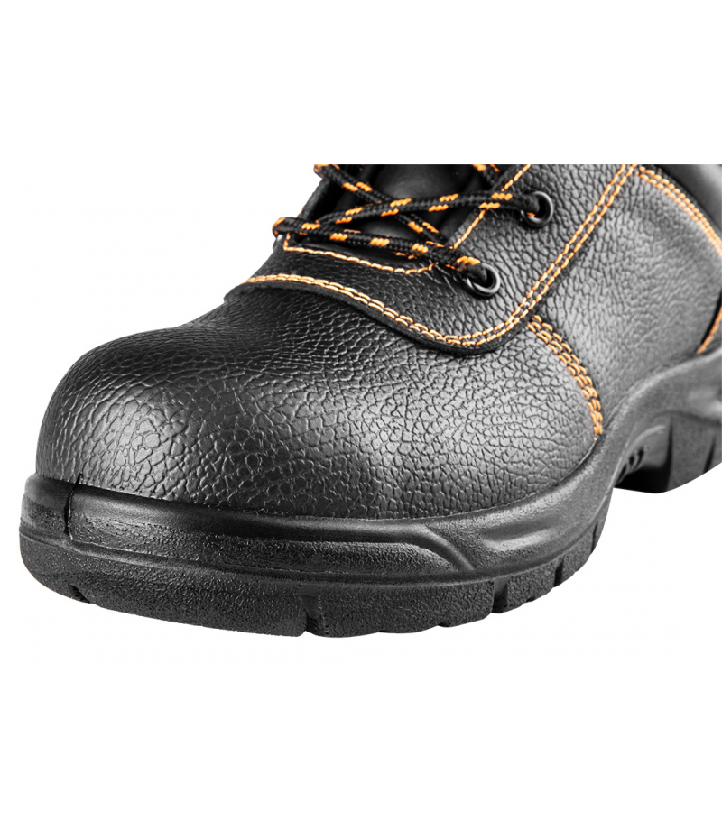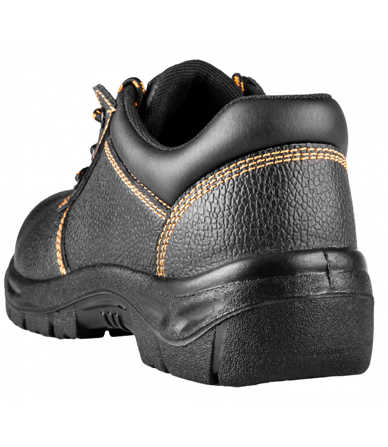 Półbuty skórzane S1 SRC, stalowy podnosek, rozmiar 41, 82-160-41 marki NEO to półbuty robocze w klasie S1 SRC, wyposażone w skórzaną cholewkę z wytłaczanej dwoiny, metalowe szlufki oraz podwójne i potrójne szwy wzmacniające konstrukcję. Stalowy podnosek zapewnia ochronę przed uderzeniami z energią równą 200 J. Buty posiadają zabudowaną piętę oraz odporność na oleje, benzynę i inne rozpuszczalniki organiczne. Charakteryzują się właściwościami antyelektrostatycznymi. Absorbcja energii w części piętowej jest zgodna z klasyfikacją obuwia bezpiecznego zgodnie z normą EN ISO 20345. Buty dostępne są w wielu rozmiarach.