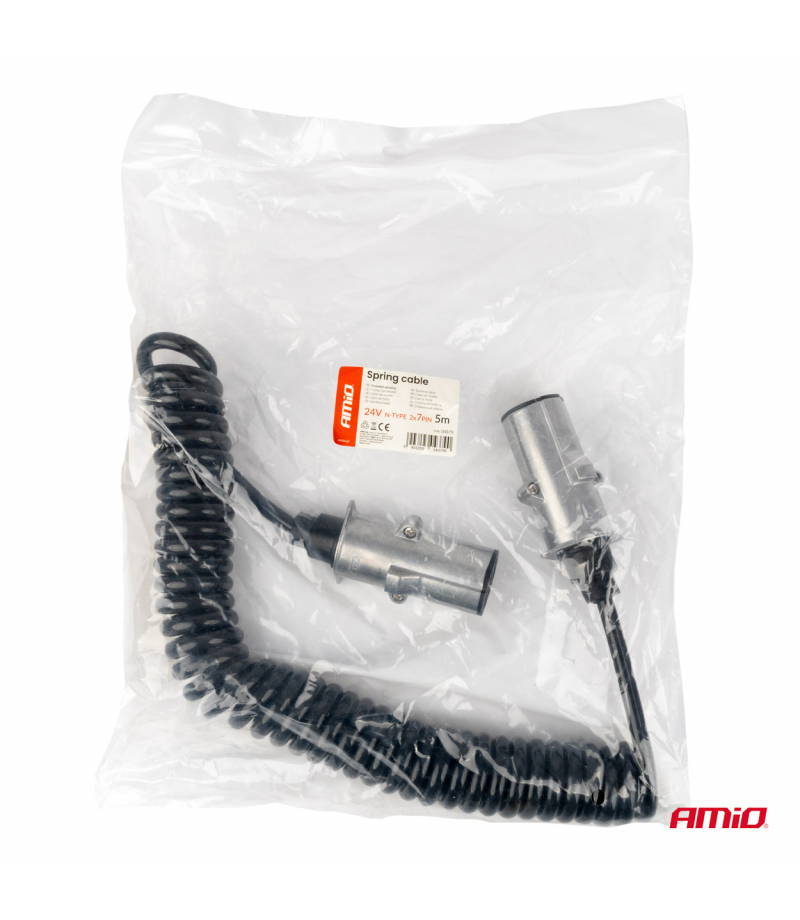 Wytrzymały i niezawodny przewód spiralny do naczepy, wyposażony w dwa złącza 7 PIN typu N, przeznaczony do instalacji 24V. Długość robocza 5 metrów zapewnia elastyczność połączenia między ciągnikiem siodłowym a naczepą, nawet przy pełnym skręcie zestawu.