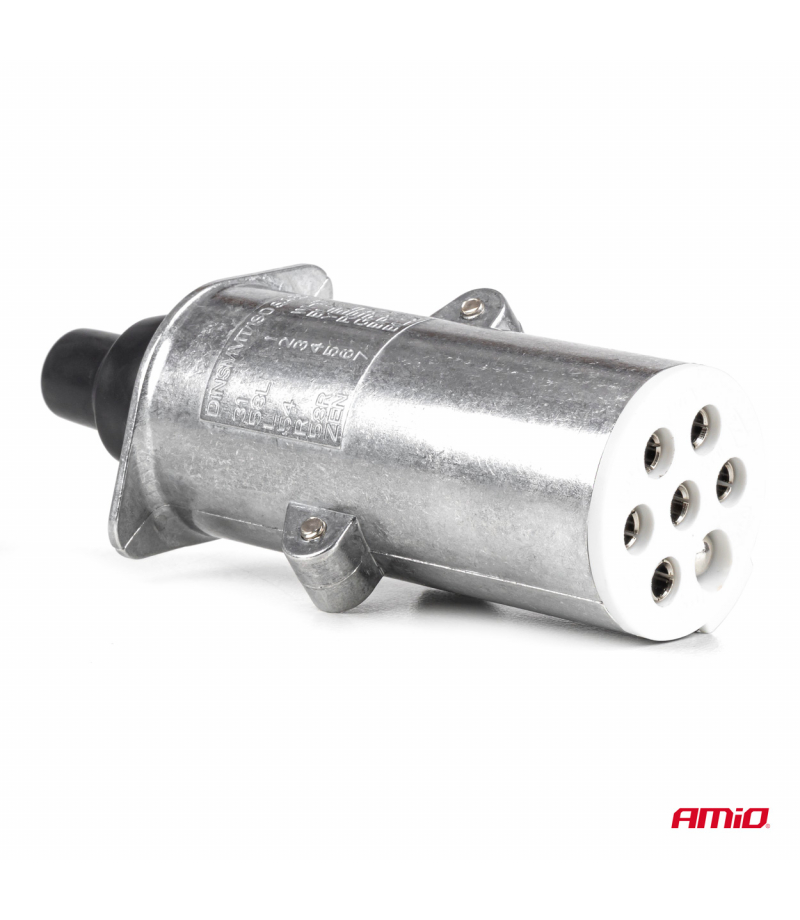 Wtyk przyczepy 7 PIN typ S 24V TIR AMIO-04791 Profesjonalna wtyczka przyczepy wykonana z aluminium, przeznaczona do instalacji elektrycznych 24V w pojazdach ciężarowych oraz zestawach z przyczepą lub naczepą. Standard typ S stosowany jest w europejskich systemach połączeń elektrycznych. Aluminiowa obudowa zapewnia wysoką odporność mechaniczną, trwałość oraz skuteczną ochronę elementów wewnętrznych przed...
