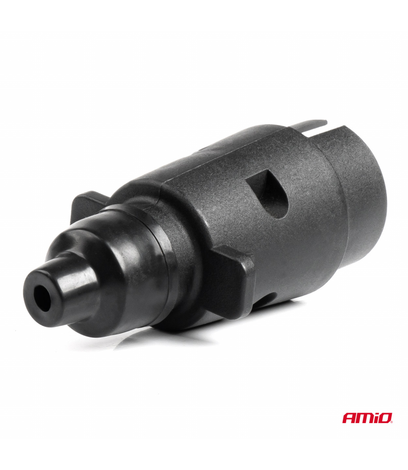 Ta 7 biegunowa wtyczka przyczepy posiada na obudowie dodatkowe wyprofilowane wypustki, które zostały pokryte delikatną fakturą umożliwiające lepsze trzymanie wtyczki, a tym samym łatwiejsze podłączenie przyczepki do auta. Bardzo często zdarza się bowiem, że wtyczka przyczepy nie zostaje podłączona przy pierwszej próbie i trzeba nią manewrować by trafić w odpowiednie ustawienie. W przypadku tej wtyczki podłączanie jest zdecydowanie łatwiejsze.