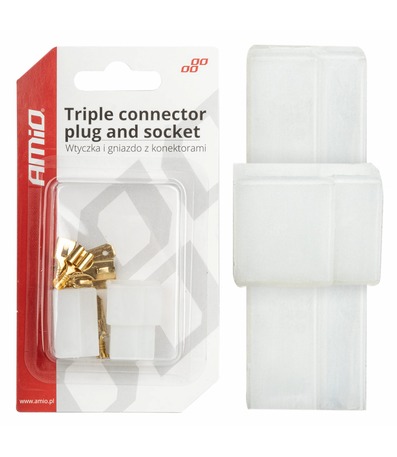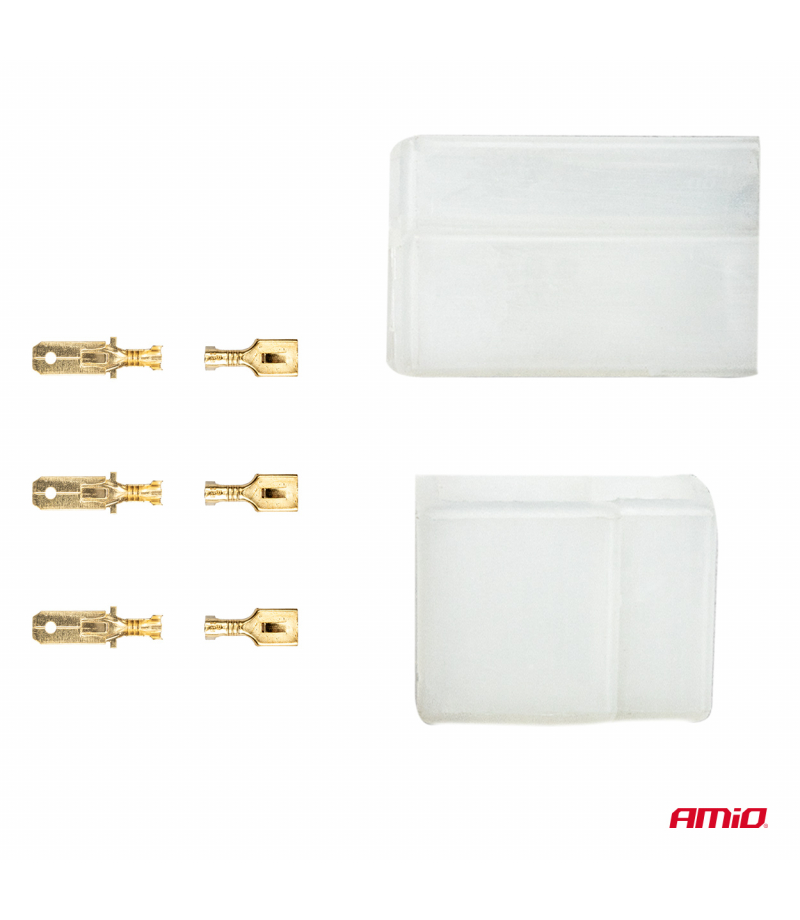 Złącze elektryczne 3 PIN Złączka znajduje zastosowanie w tworzeniu wszelkich połączeń elektrycznych w instalacji samochodu, od których wymagana jest możliwość rozłączania. Można jej także wykorzystać jako element naprawczy w przypadku uszkodzenia lub przecięcia przewodów. W skład zestawu wchodzi: konektor "damski" 3 szt. konektor "męski" 3 szt. osłonki 2 szt. Ilość w opakowaniu [szt.]: 2 Producent: AMiO Nr...