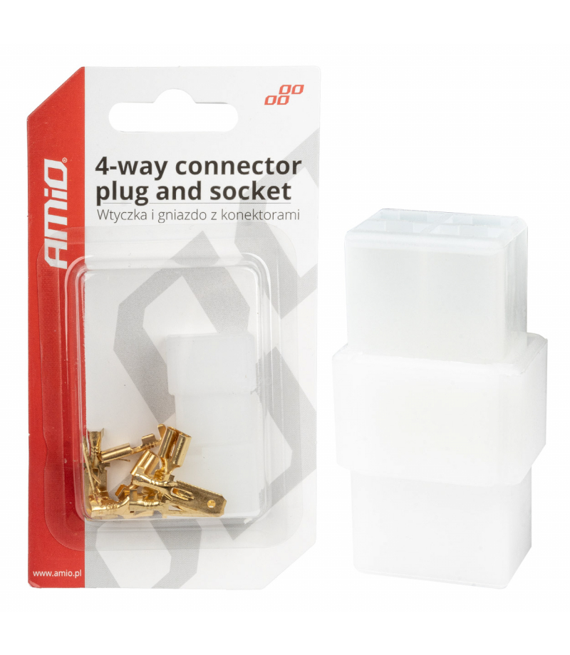 Złącze elektryczne 4 PIN Złączka znajduje zastosowanie w tworzeniu wszelkich połączeń elektrycznych w instalacji samochodu, od których wymagana jest możliwość rozłączania. Można jej także wykorzystać jako element naprawczy w przypadku uszkodzenia lub przecięcia przewodów. W skład zestawu wchodzi: konektor "damski" 4 szt. konektor "męski" 4 szt. osłonki 2 szt. Ilość w opakowaniu [szt.]: 2 Producent: AMiO Nr...