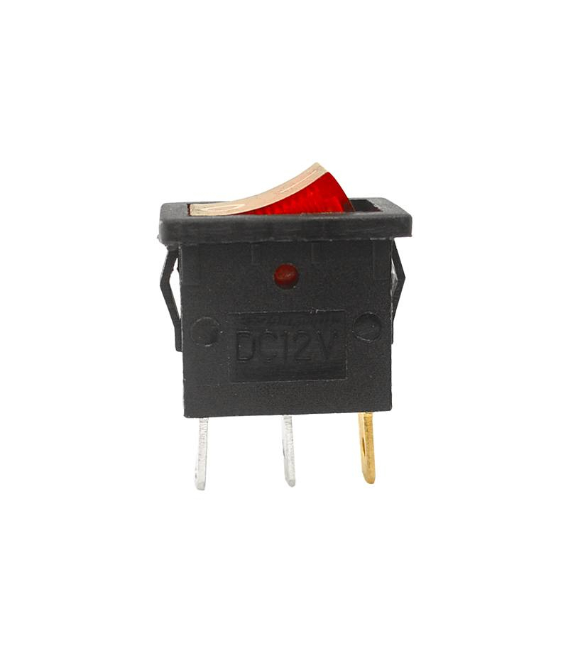 Przełącznik IRS-701DC 12V podświetlany, czerwony LAMEX LX3083C Rezystancja styków zwartych : 35 mOhm maksymalnie rezystancja styków rozwartych: 500 V DC 100 mOhm minimum Wytrzymałość dielektryczna obudowy: 1500 V AC / 1 minuta Zakres temperatur pracy: -30 .... 80 stopni C Żywotność: 10000 cykli Ilość styków: 3...