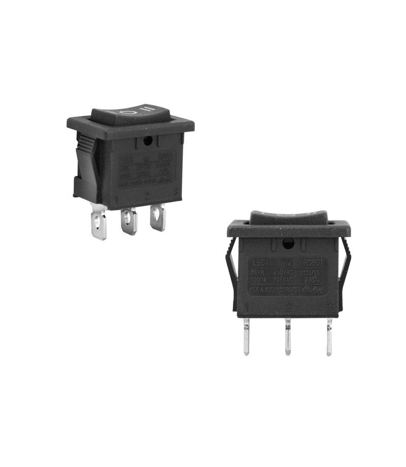 Przełącznik kołyskowy prostokąt, 1-0-2, 6A, 250V, 3 piny, HQ LECI LAMEX LXHA021 Wysokiej jakości przełącznik pojedynczy pracujący w napięciu do 250V. Przełącznik trój pozycyjny 1-0-2. Element wykonawczy w kolorze czarnym. Ilość pozycji przełącznika: 3 Rodzaj: Pojedynczy Zasada przełączania: 1-0-2 Kolor części wykonawczych: Czarny...