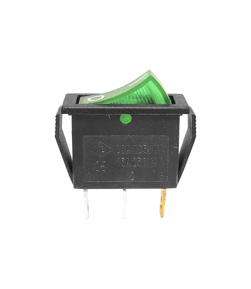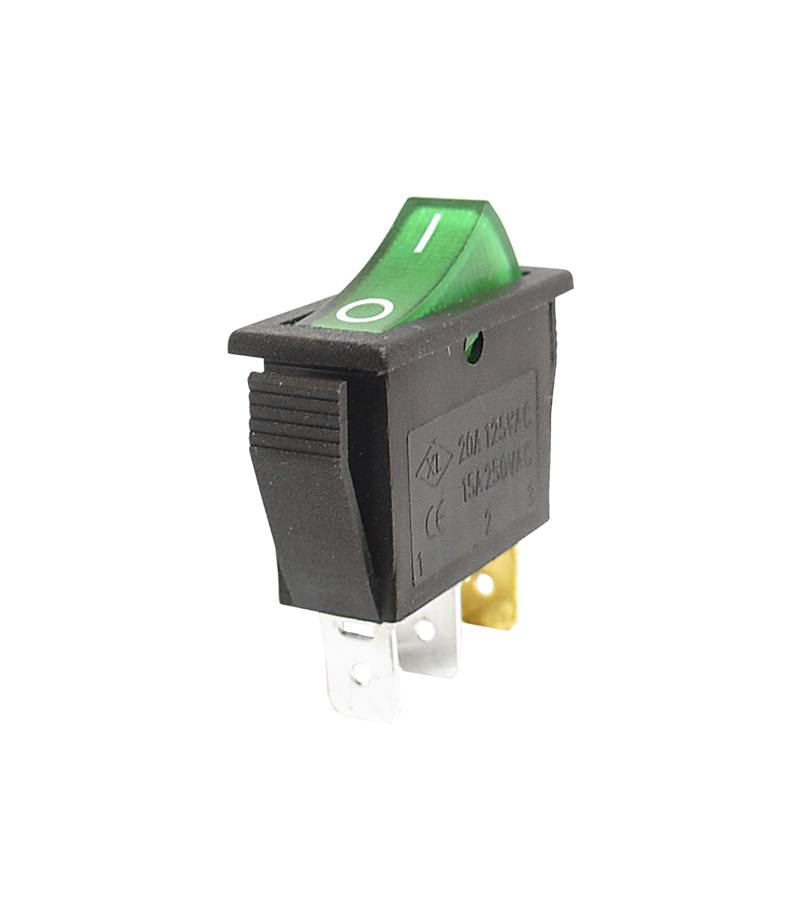 Przełącznik MK 111 podświetlany zielony 12V LAMEX LX3088B/12VZ Szerokość: 33 mm Długość: 13 mm Wysokość: 38 mm Długość styków: 10 mm Obciążalność styków: 20A 12 V Rezystancja styku: 35 mOhm max Rezystancja izolacji: 500VAC / 1 minuta Zakres temperatur pracy:...