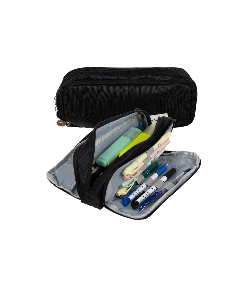 DUŻY CZARNY PIÓRNIK SZKOLNY - SASZETKA TRZYKOMOROWY STYLOWY DESIGN - trzykomorowy piórnik wyróżnia się eleganckim wyglądem i nowoczesnym designem. Wykonany z wytrzymałego materiału OXFORD , piórnik zapewnia nie tylko długotrwałe użytkowanie, ale także estetyczny wygląd, który z pewnością przypadnie do gustu zarówno uczniom, studentom, jak i profesjonalistom. ZAMYKANY NA NOWOCZESNE SUWAKI - suwaki w piórniku są zapinane na zamek z nowoczesnymi, okrągłymi uchwytami , co dodaje mu...
