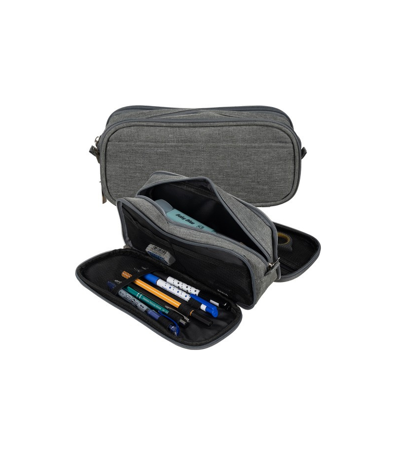 DUŻY SZARY PIÓRNIK SZKOLNY - ROZKŁADANY / TRZYKOMOROWY POJEMNY PIÓRNIK Z ZEWNĘTRZNYMI KIESZONKAMI - piórnik składa się z 3 części, każda jest zamykana na suwak, co zapewnia wygodny i szybki dostęp do zawartości . Dzięki dodatkowym zewnętrznym kieszonkom możesz mieć zawsze pod ręką np. na legitymację szkolną czy studencką, bilet miesięczny albo ściągę. WSZECHSTRONNY I UNIWERSALNY - piórnik jest niezwykle wszechstronny i może być używany w różnych sytuacjach. Szkoła - doskonały do...