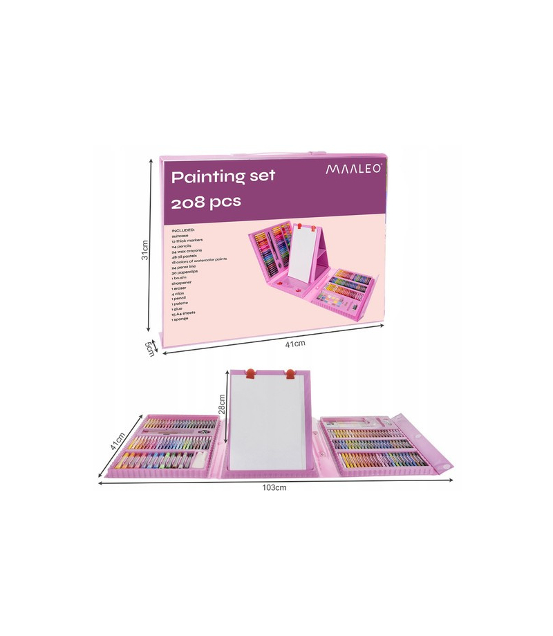 ZESTAW XXL DO MALOWANIA W WALIZCE AŻ 208 ELEMENTÓW PRAKTYCZNA WALIZKA – zestaw artystyczny dla dzieci posiada praktyczną walizkę z wytłoczkami, która wyposażona jest w zamknięcie na 3 rzepy oraz wygodną rączkę. Dzięki temu transportowanie walizki jest komfortowe i bardzo proste, a zawartość się nie rozsypuje. Zestaw świetnie sprawdzi się na wyjścia do szkoły, przedszkola, w plener czy do koleżanki. G IGANTYCZNY ZESTAW – zestaw do malowania w walizce to aż 208 elementów , w tym:...
