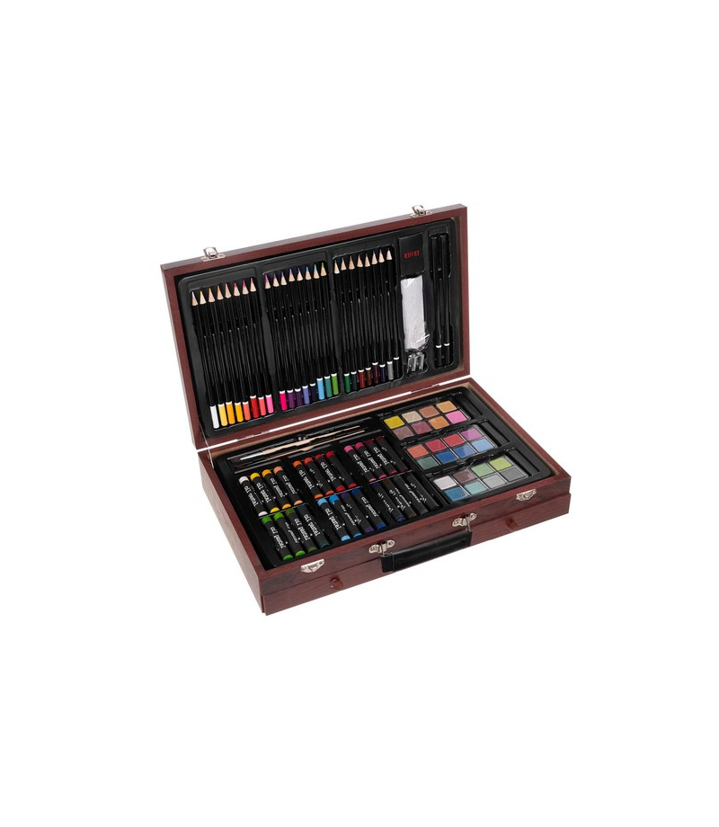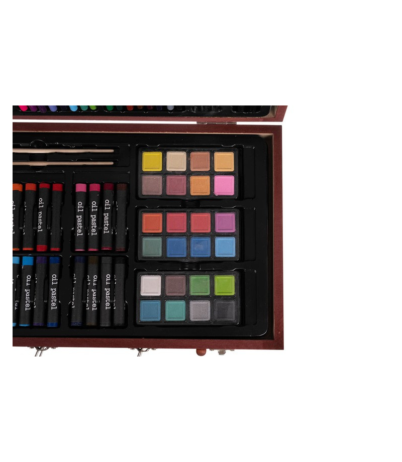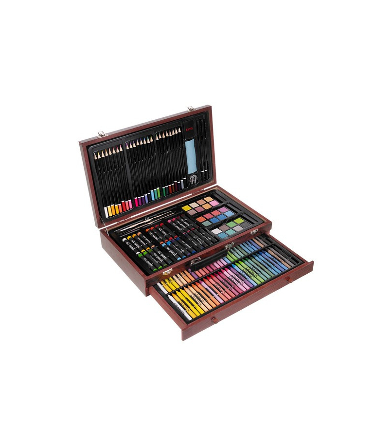 ZESTAW DO MALOWANIA W DREWNIANEJ WALIZCE Z SZUFLADĄ MNÓSTWO ELEMENTÓW – zestaw do malowania w walizce posiada wiele elementów, w tym: 60 kredek woskowych, 24 pastele, 24 kredki drewniane, 24 farbki wodne, ponadto 2 pędzelki, temperówkę, 8 papierów ściernych, gumkę, dwa ołówki HB oraz 2B. PRAKTYCZNA WALIZKA Z SZUFLADKĄ – zestaw artystyczny dla dzieci posiada praktyczną drewnianą walizkę, która wyposażona jest w zamknięcie i uchwyt. Dzięki temu transportowanie zawartości walizki jest...